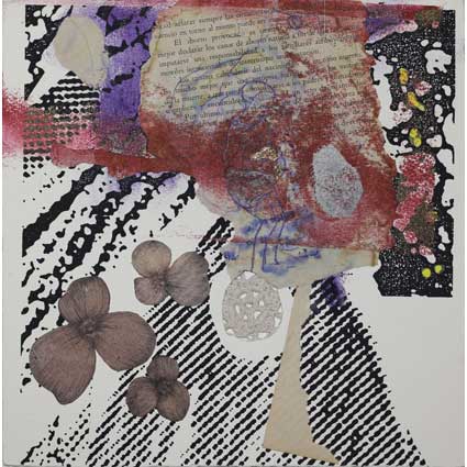 Técnica mixta, serigrafía y collage sobre papel superalfa. 15x15 cm.